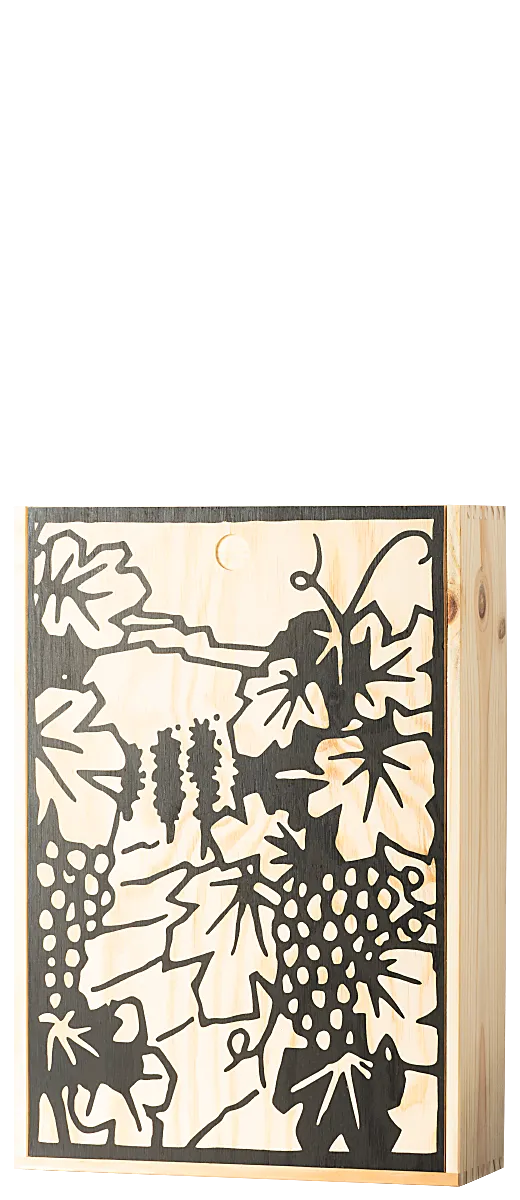 Unsere Holzkiste im Ott Design. Perfekt für drei Flaschen 0,75 Liter OTT-Wein.